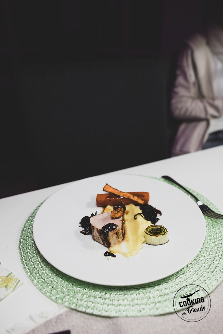 Schweinefilet mit BBQ-Karotten und Zwiebeln-Confit