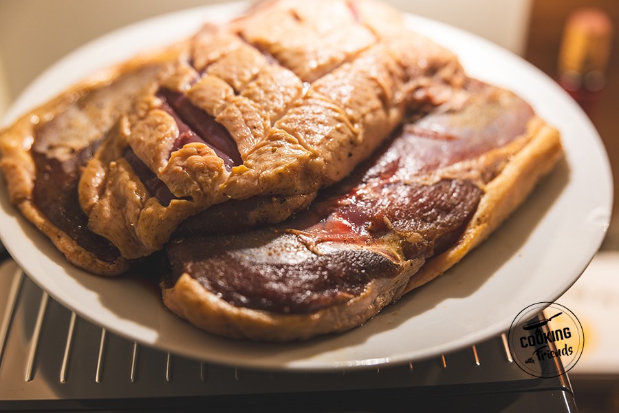 Die Entenbrüste aus der Marinade nehmen und gut trocken tupfen.