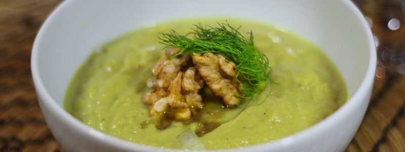 Fenchel-Lauch-Süppchen mit gerösteten Walnüssen und Ahornsirup