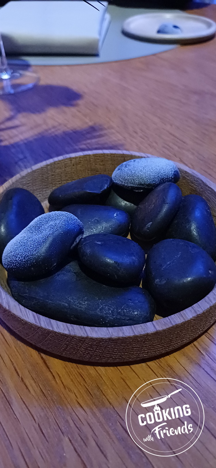 Die kulinarische Reise begann mit identischen Küchengrüßen: Wir wurden mit Weizen-Sauerteig-Brot, Stone mit Parmesancreme, einer Thunfisch-Praline mit Wasabi und Tatar vom Black Angus mit Thaigurke im Knusperkörbchen verwöhnt.