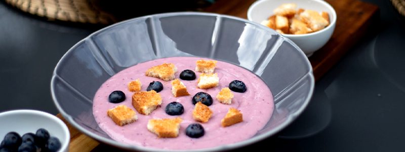 Heidelbeer-Süppchen mit Kokos-Croutons
