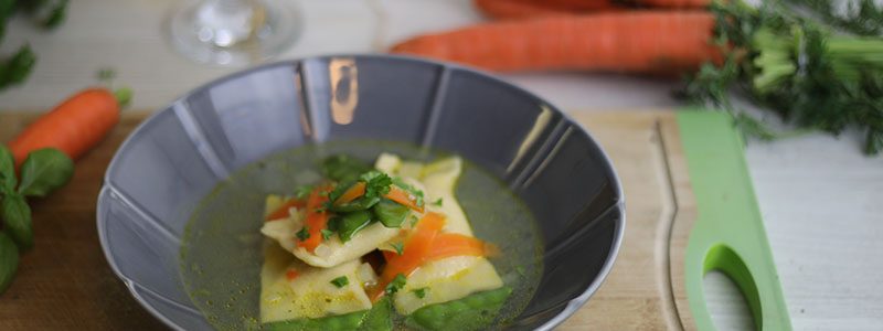 Gemüsesuppe mit Ricotta-Basilikum-Maultasche